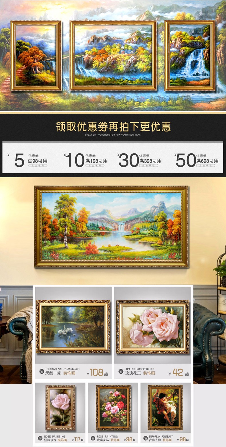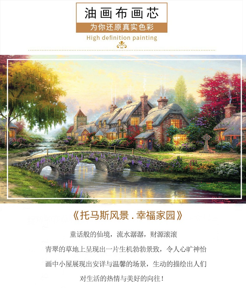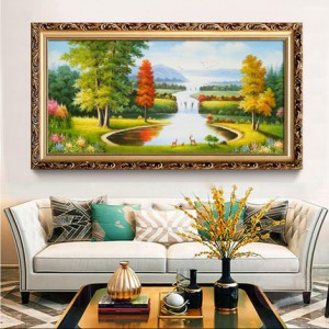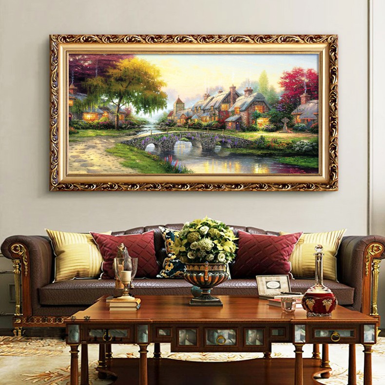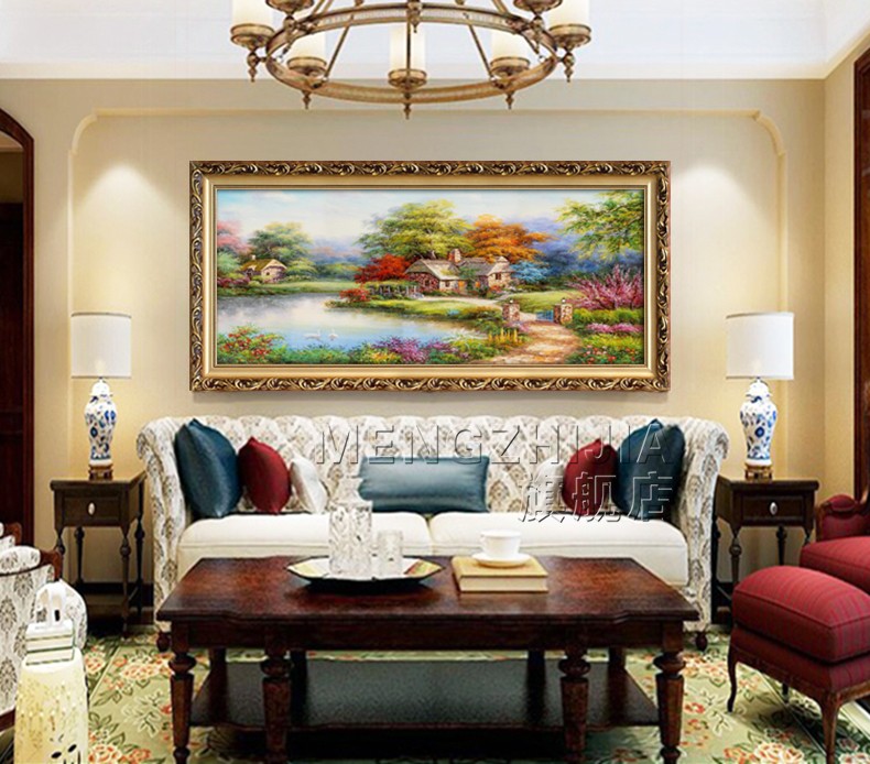 聚寶盆山水畫田園風景掛畫歐式客廳裝飾畫沙發背景墻油畫招財壁畫