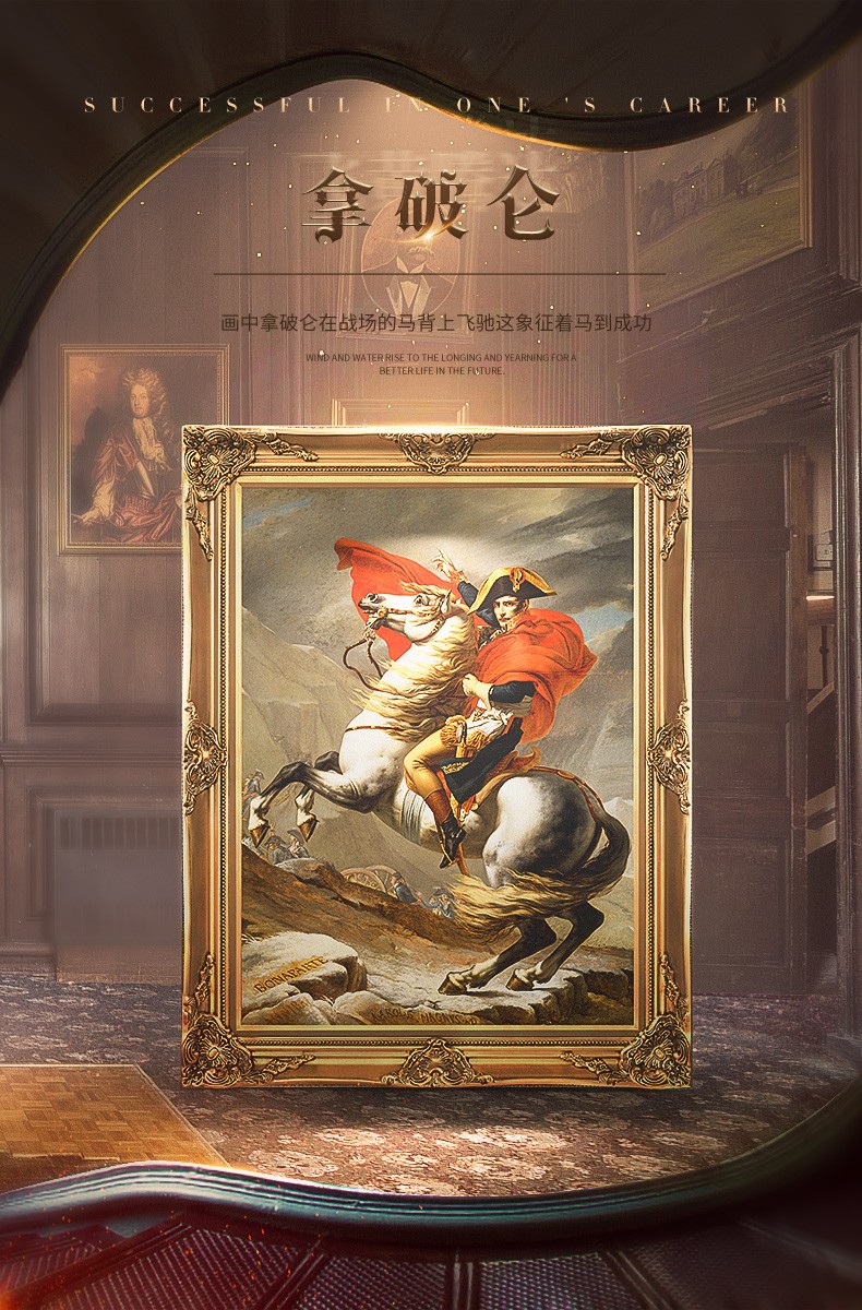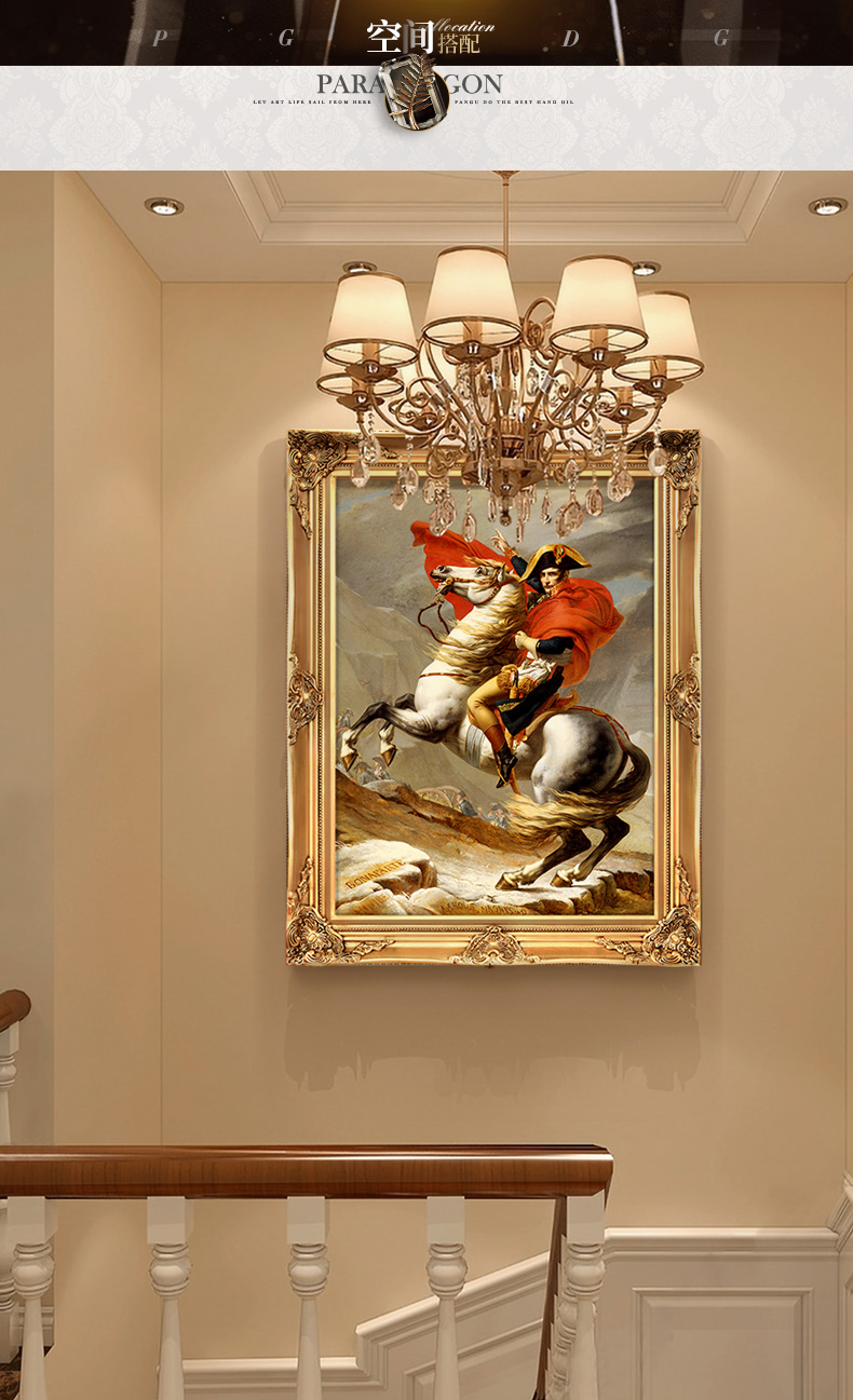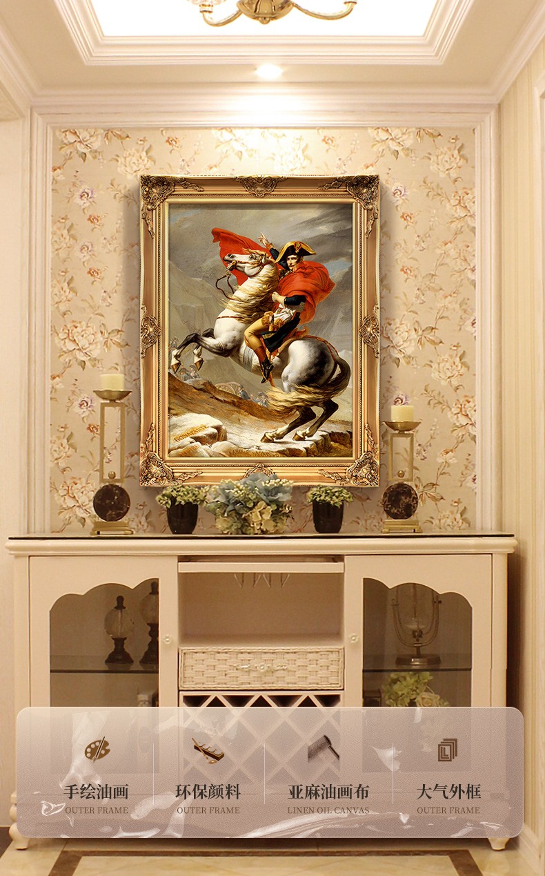 拿破侖手繪歐式人物肖像馬定制客廳玄關油畫別墅豎版走廊裝飾掛畫