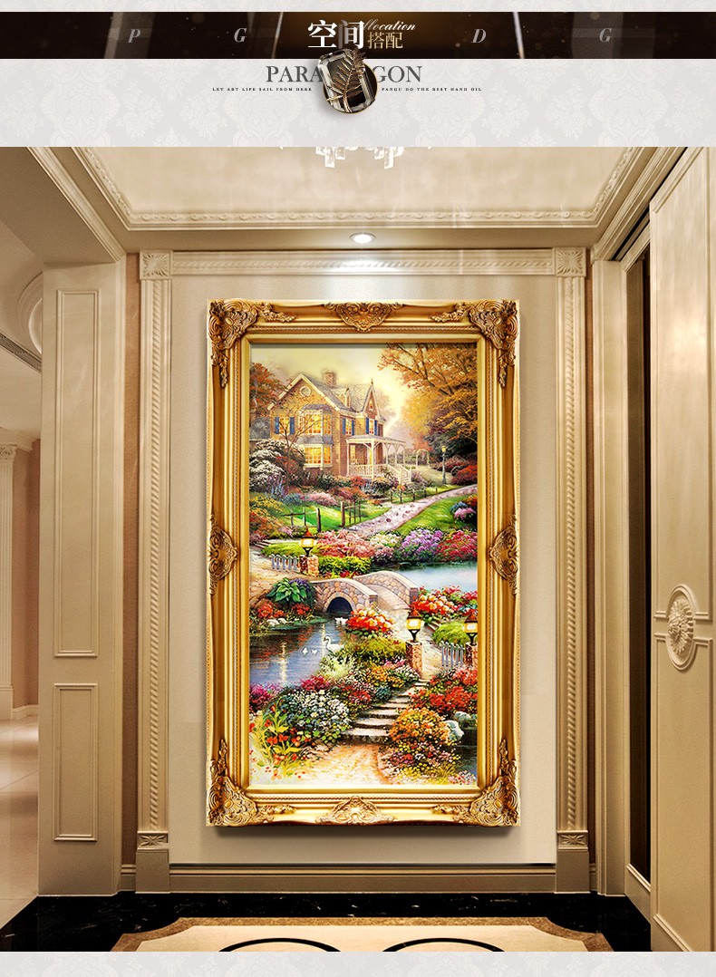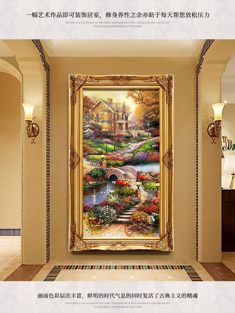 歐式玄關裝飾畫山水過道招財風水靠山寶盆山豎版美式掛畫油畫壁畫
